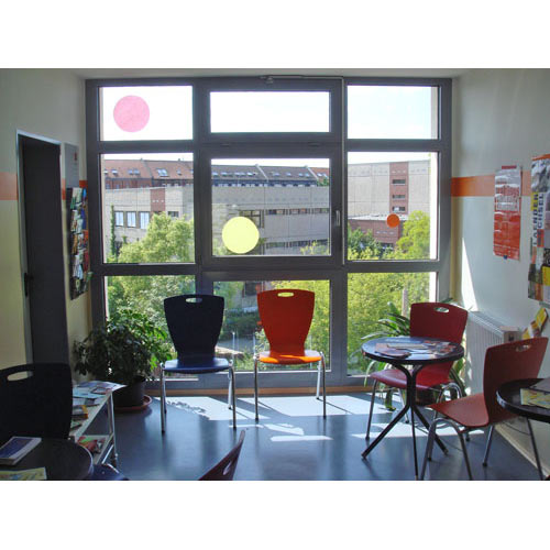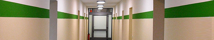 Hauptfarbträger sind hier Wände, Bodenbeläge, Türblätter, Jalousien.