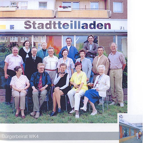 Der Stadtteilladen entstand im EG einer ca. 300 m² großen Funktionsunterlagerung (Erdgeschosszone eines 11geschossigen Wohnblocks in Plattenbauweise für Geschäfte, Büros und Funktionsräume). Der triste, sehr tiefe Grundriss musste in Räume mit vielfältiger Nutzung und lebendiger, stadtteilnaher Ausstrahlung verwandelt werden. Der Ort musste die Akzeptanz der Anwohner gewinnen.